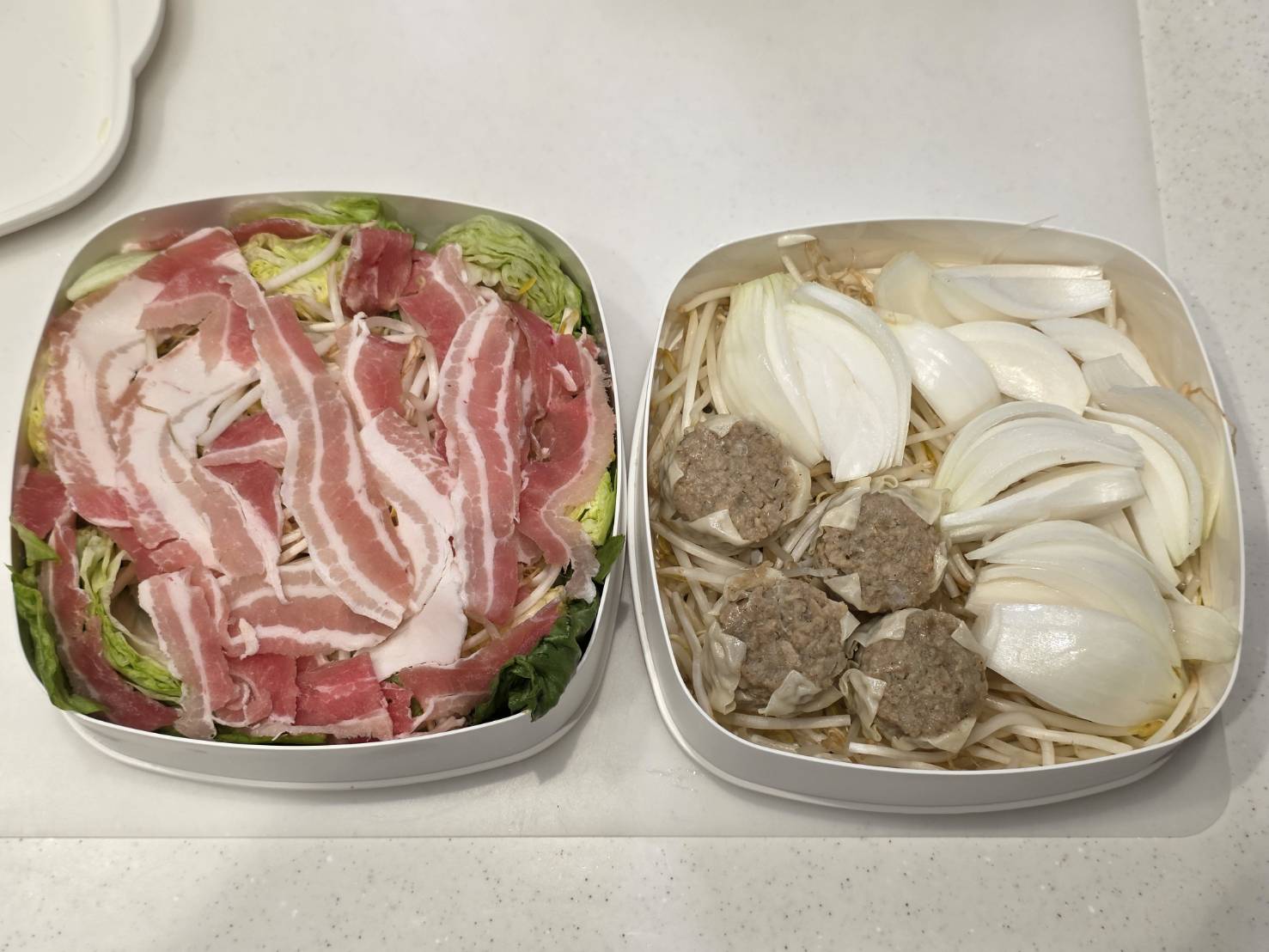 今回は大の方を使って、シンプルに野菜と豚バラの重ね蒸しと