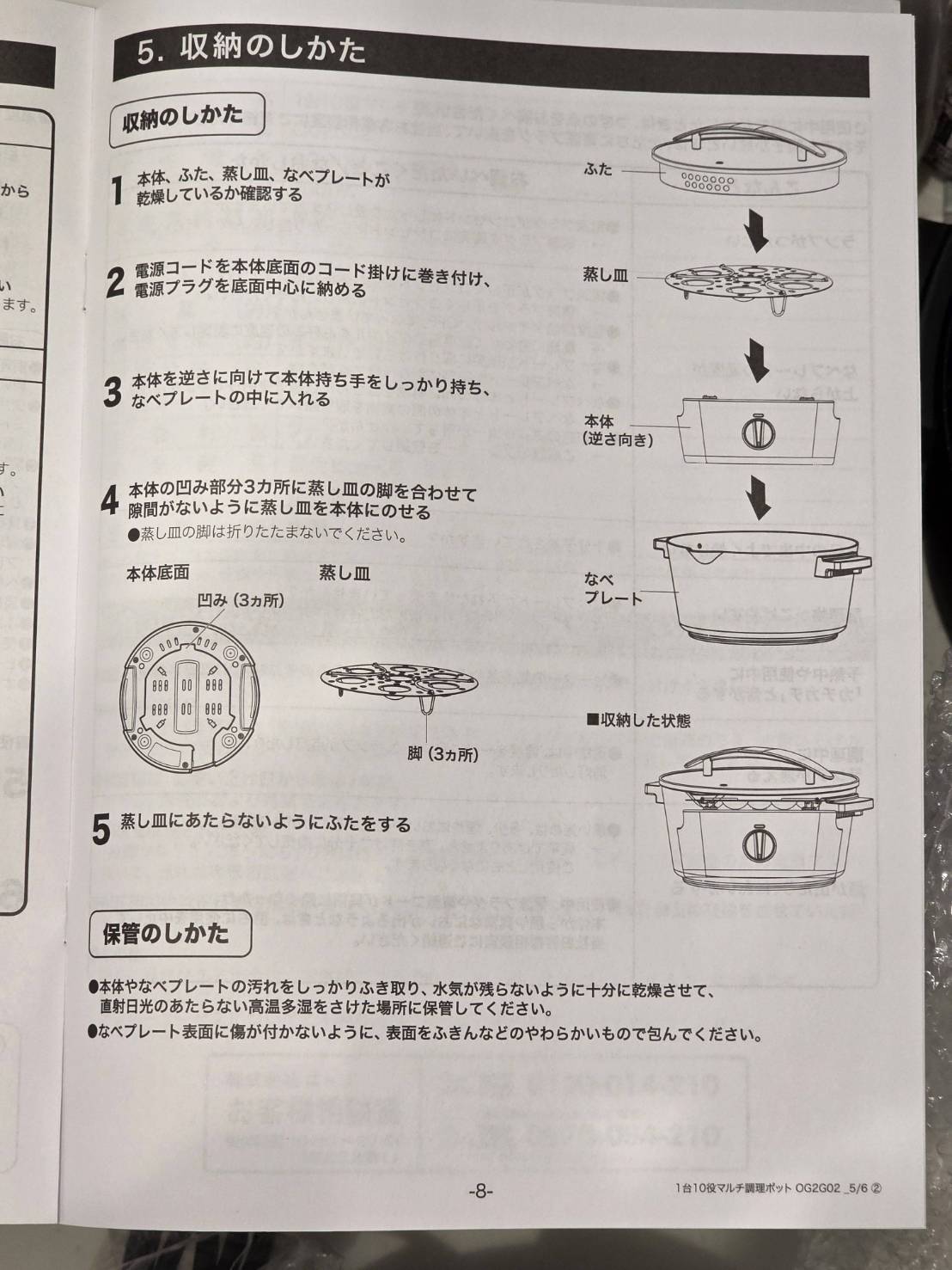 説明書には、使い方やお手入れ方法の他、収納方法もちゃんと