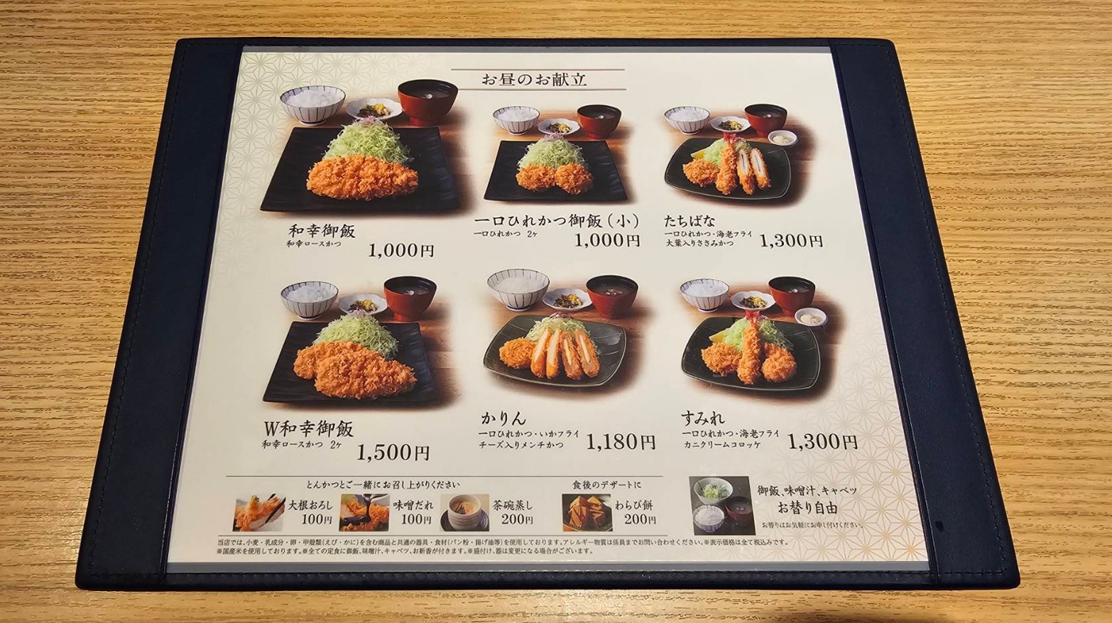 そんなとんかつ和幸のランチメニューはこんな感じ。