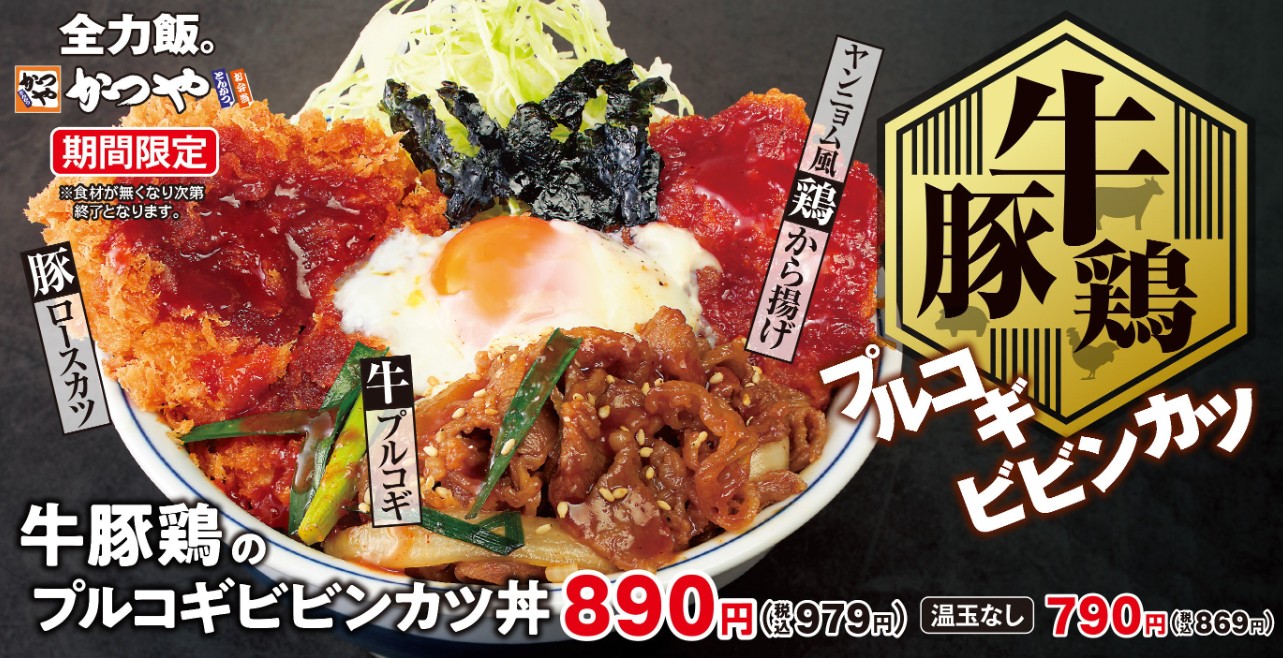 それはさておき今回の「牛豚鶏のプルコギビビンカツ丼」かつやによると