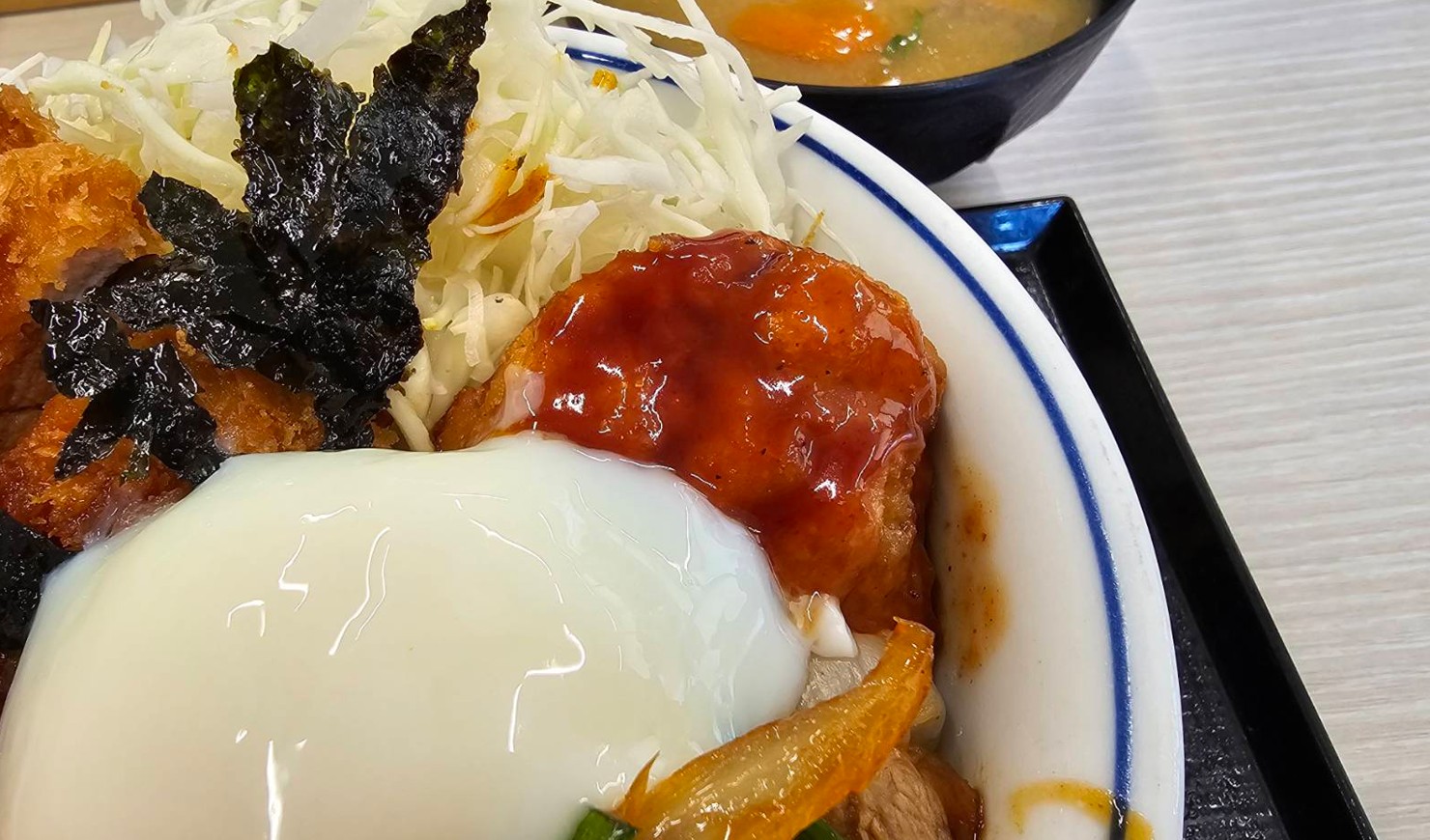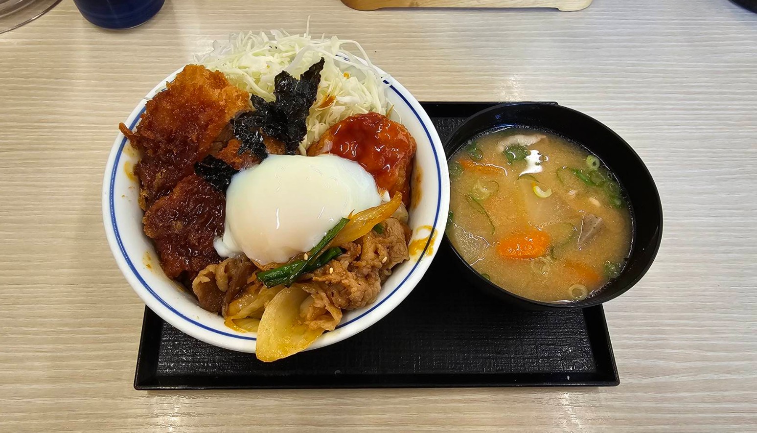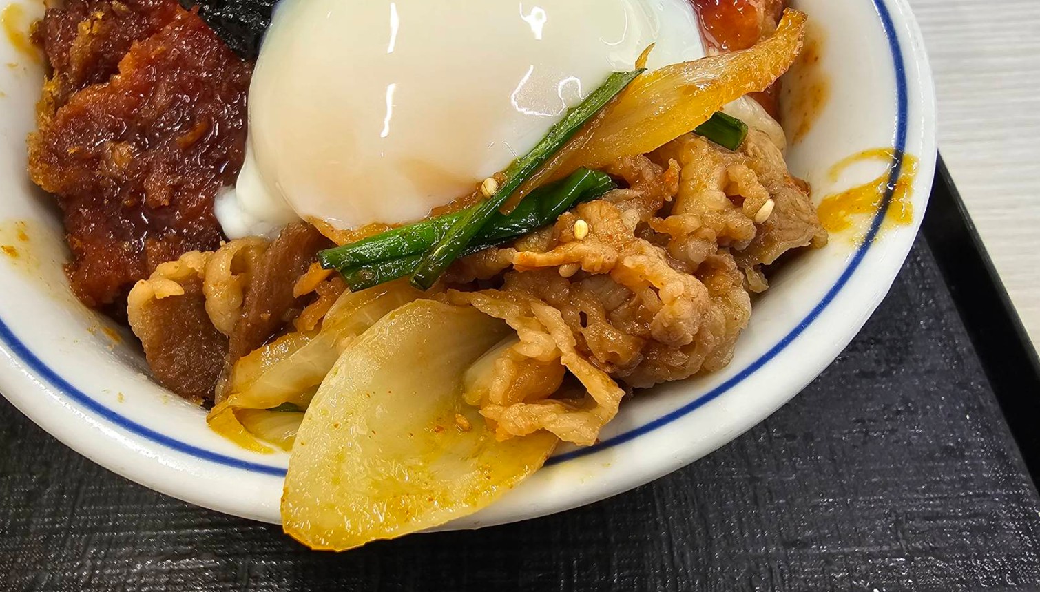 牛豚鶏のプルコギビビンカツ丼 到着