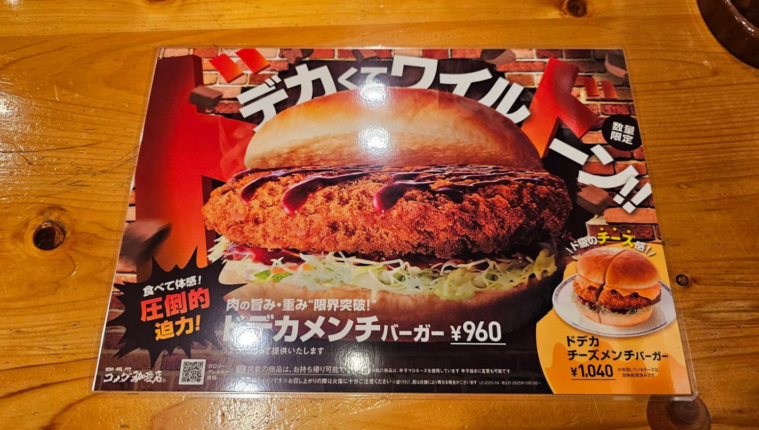 本日10/16から新発売の「ドデカメンチバーガー」を食べてきました。