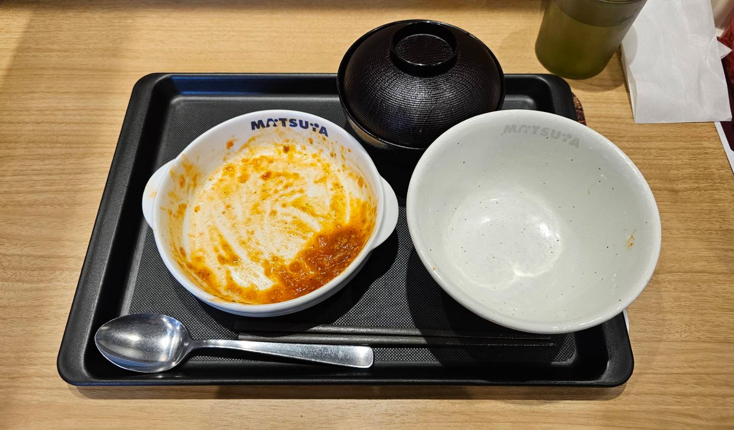 う~ん、なんかですね食べ進めれば食べ進めるほど松屋でパスタを食べる必要性のなさをどんどん実感してくるんですよね。わざわざ1200円くらい払って中途半端なパスタを1200円で食べるなら、それなりに綺麗な店で1500円でちゃんとできたてのパスタ食ったほうが良いよな感。