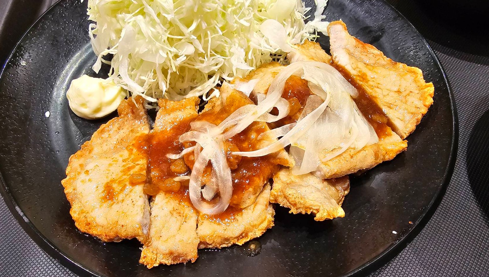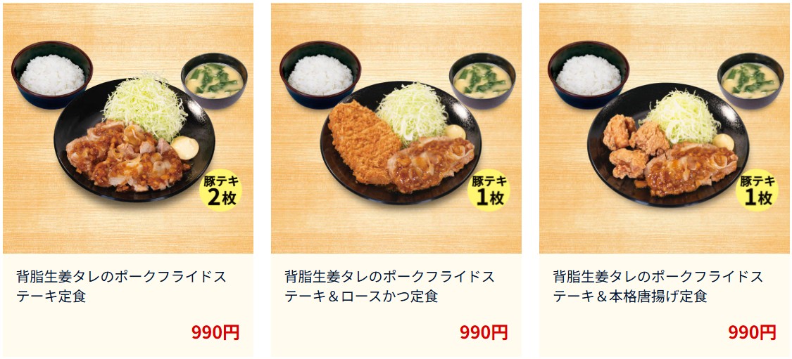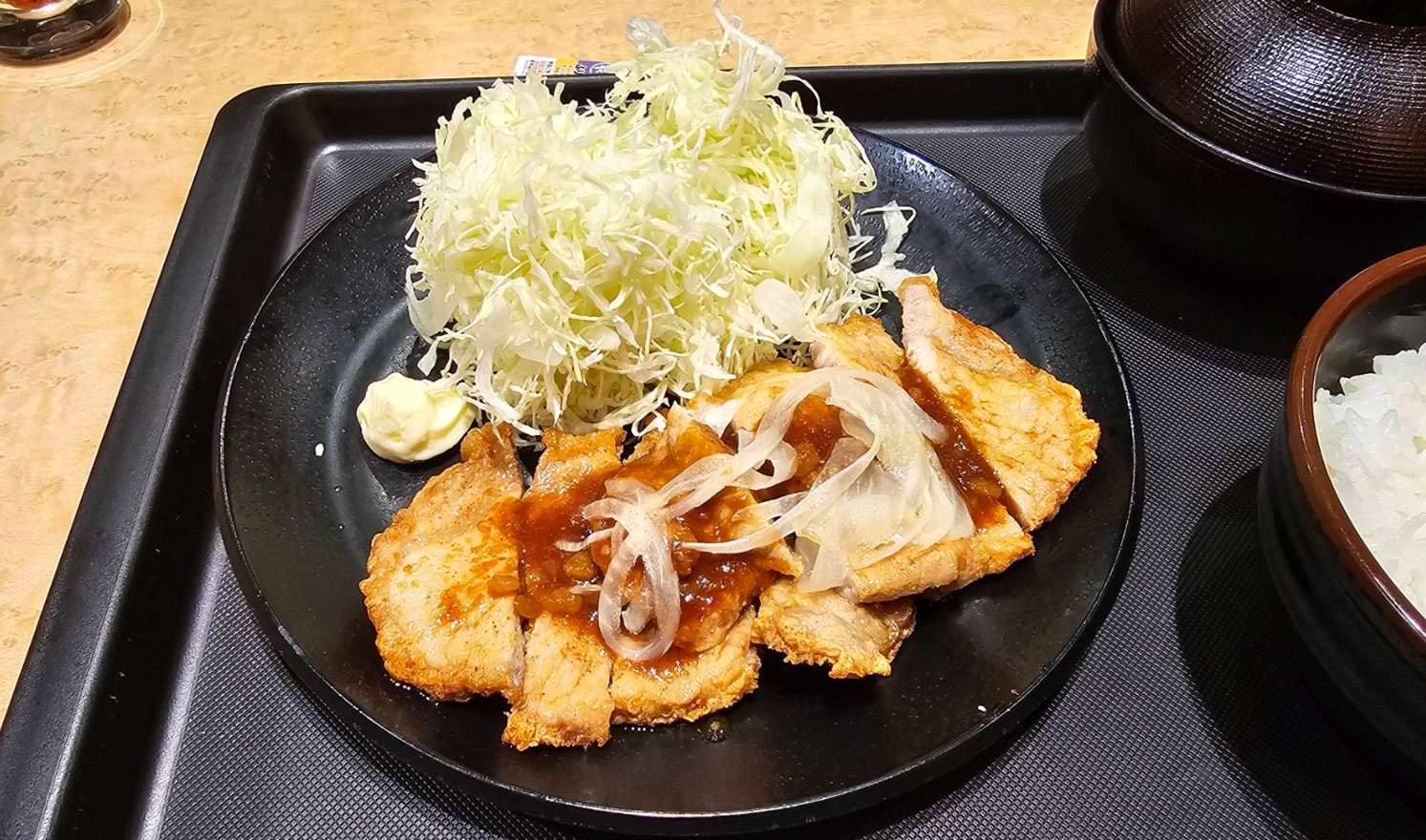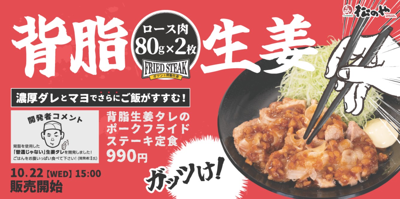 今回の「背脂生姜タレのポークフライドステーキ定食」松のやによると
