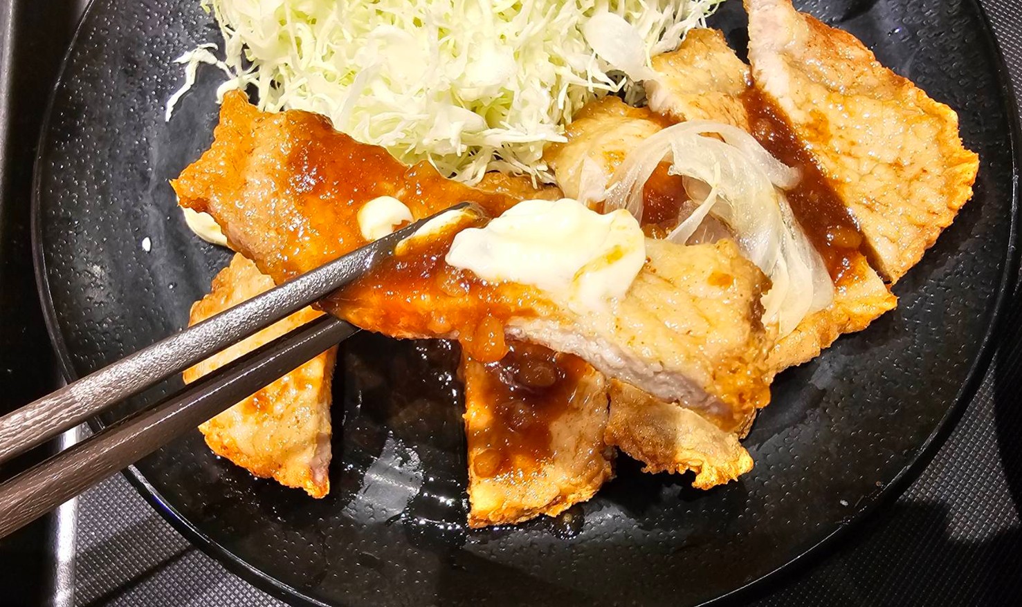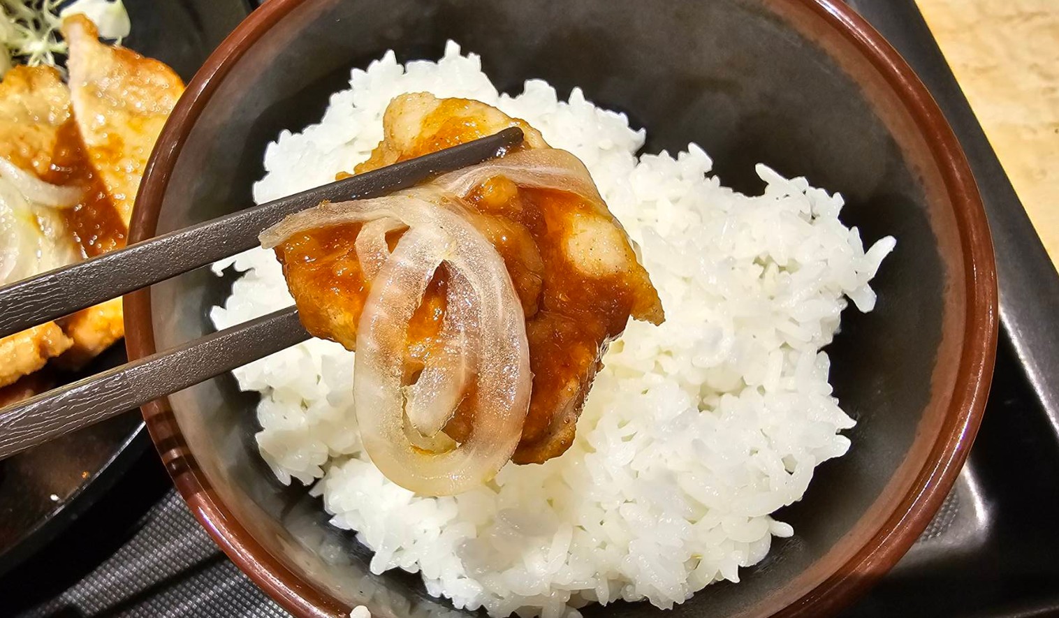 タレがかかっていない部分も食べてみましたが、お肉だけで食べても生姜焼きみたいな味が結構しっかりついてました。