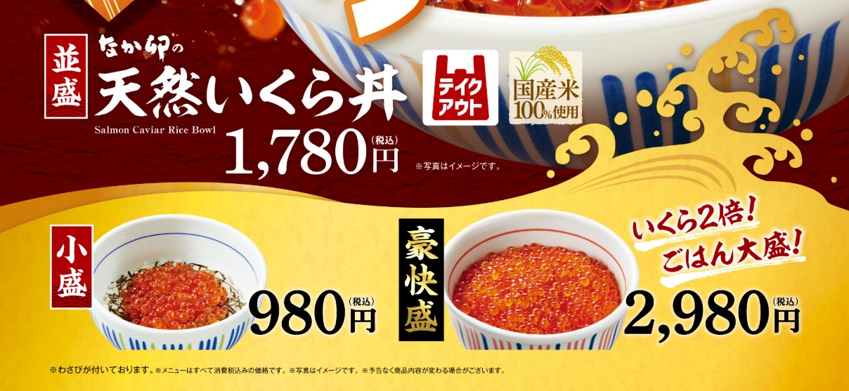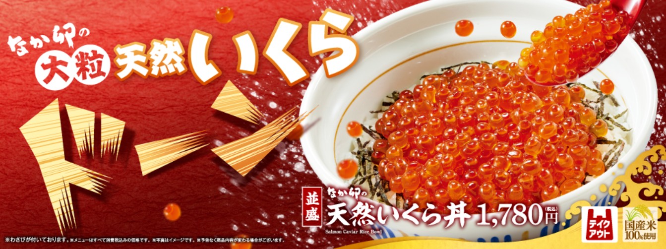 毎年恒例の「なか卯のいくら丼」が今年も始まったので早速食べてきました。
