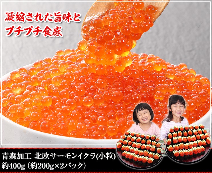 青森加工 北欧サーモンイクラ(小粒)約400g 3490円