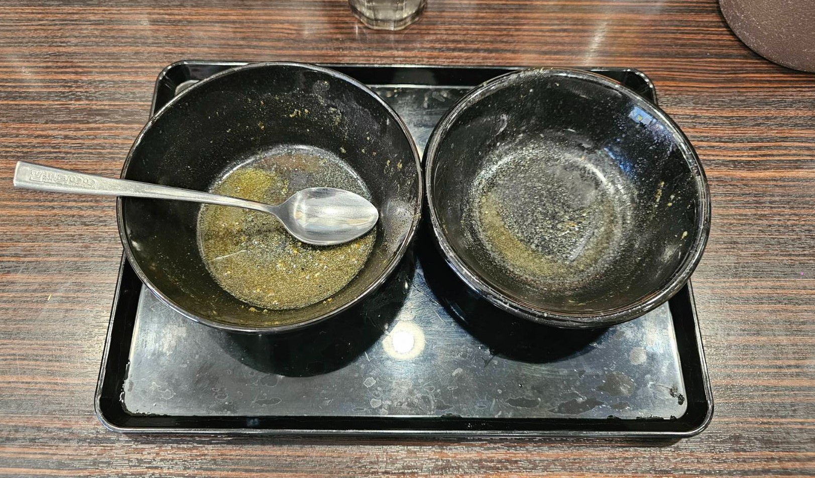 ご飯をスープに漬けたらスープの中でご飯が散って美しくないし、スープをご飯にかけるのもなんか違う感。