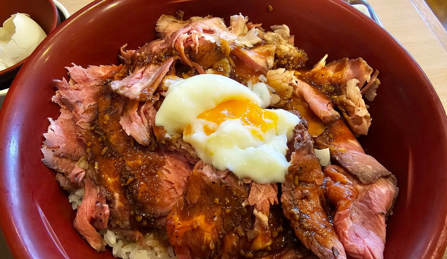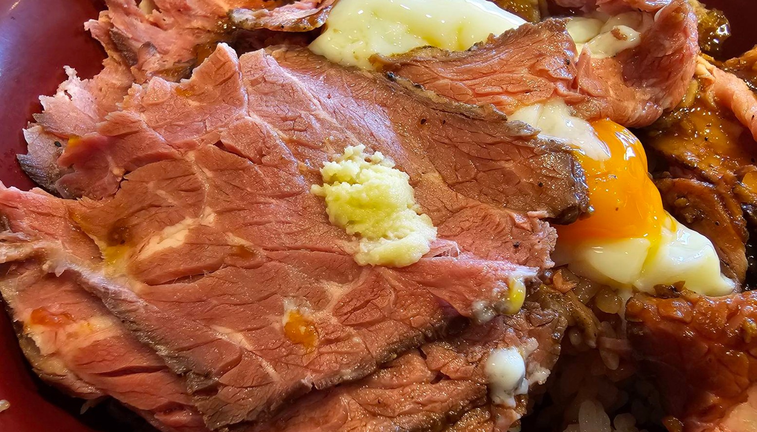 旨みの詰まったローストビーフと、ニンニクが効いた濃厚な醤油ダレ、まろやかなたまごが調和した、至福の味わいをご堪能ください。