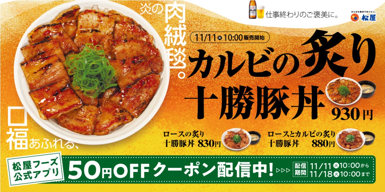 11/11から新発売の「ロースとカルビの炙り十勝豚丼」を食べてきました。