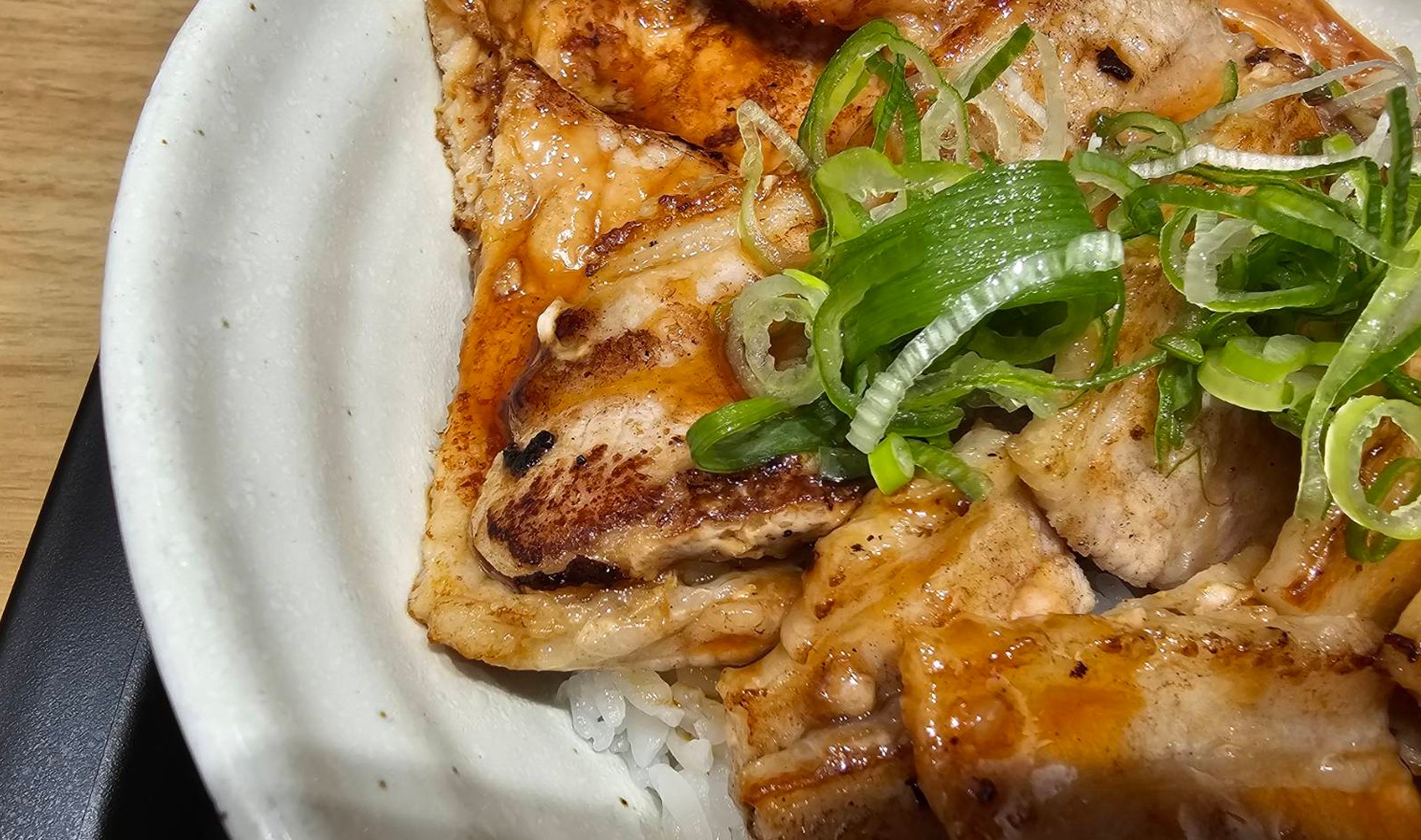 私は本場の豚丼食べたことがないのでわかりませんが、もっと色が濃くてベタっとしたたれのイメージでした。