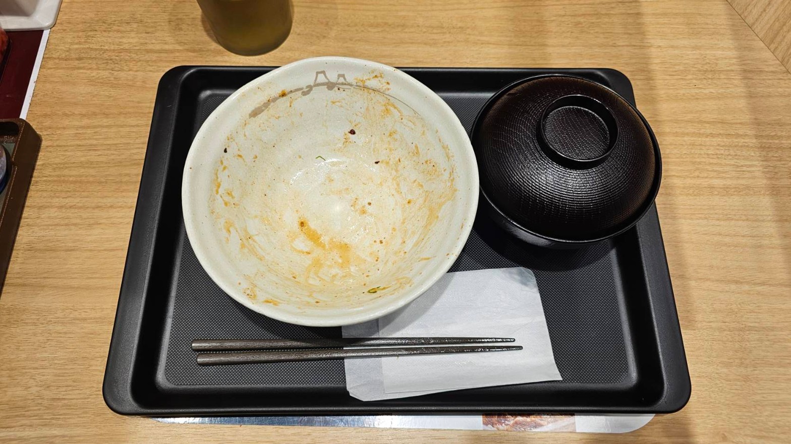 テーブルがクッソ汚いことで有名な会社近くの松屋です。