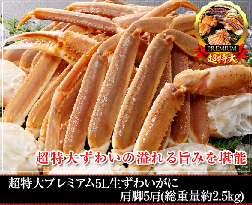 ▶ おすすめ商品:超特大プレミアム5L生ずわいがに肩脚