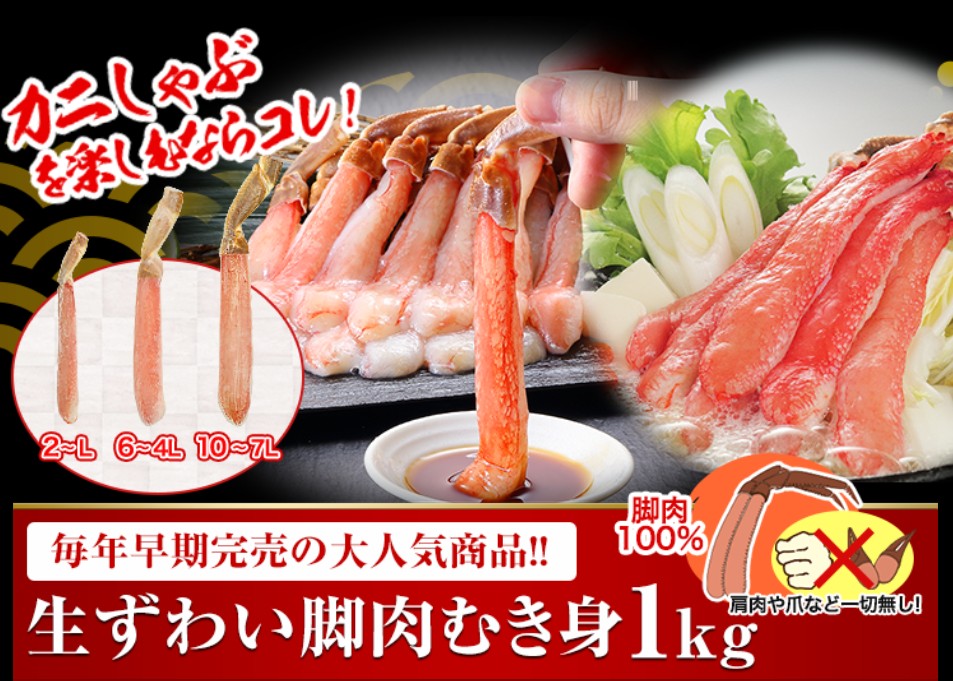 ▶ おすすめ商品:【刺身用】超特大10L~7L生ずわい脚肉むき身