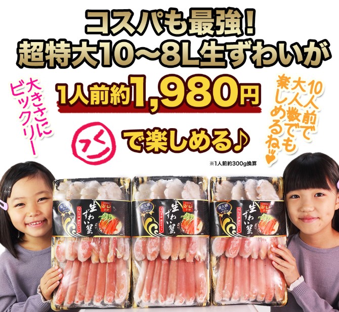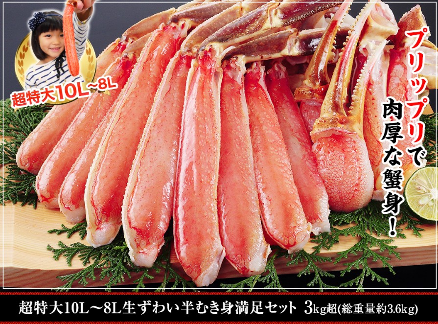 ▶ おすすめ商品:超特大10L~8L生ずわい蟹半むき身満足セット