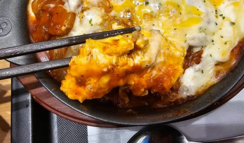 鉄板で熱しているのか熱々でハフハフしながら食べました。