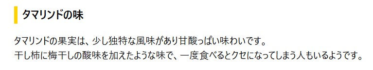 そんなへっぽこ舌の私向けにタマリンドの味も懇切丁寧に説明がありました。