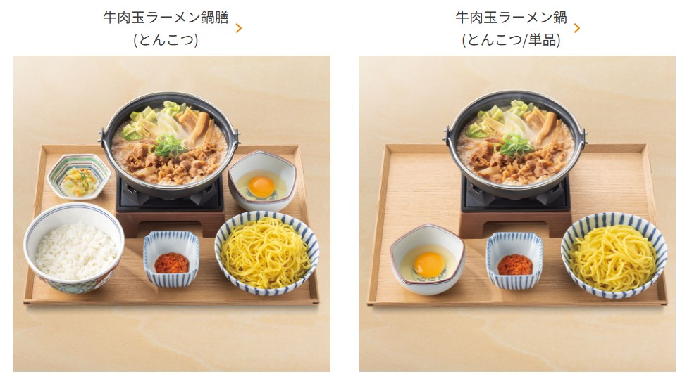 吉野家の麺メニュー第2弾として登場する新商品 「牛肉玉ラーメン鍋膳(とんこつ)」は、牛肉、玉子、野菜、麺を濃厚なとんこつ醤油スープと共に楽しめる、新感覚の”ラーメン鍋”です。ぐつぐつと煮立つ湯気から広がる、香ばしくてコク深い香り。ひと口すすると、旨みが染み出た牛肉と、スープをしっかり吸った麺が絡み合い、口いっぱいに濃厚な味わいが広がります。