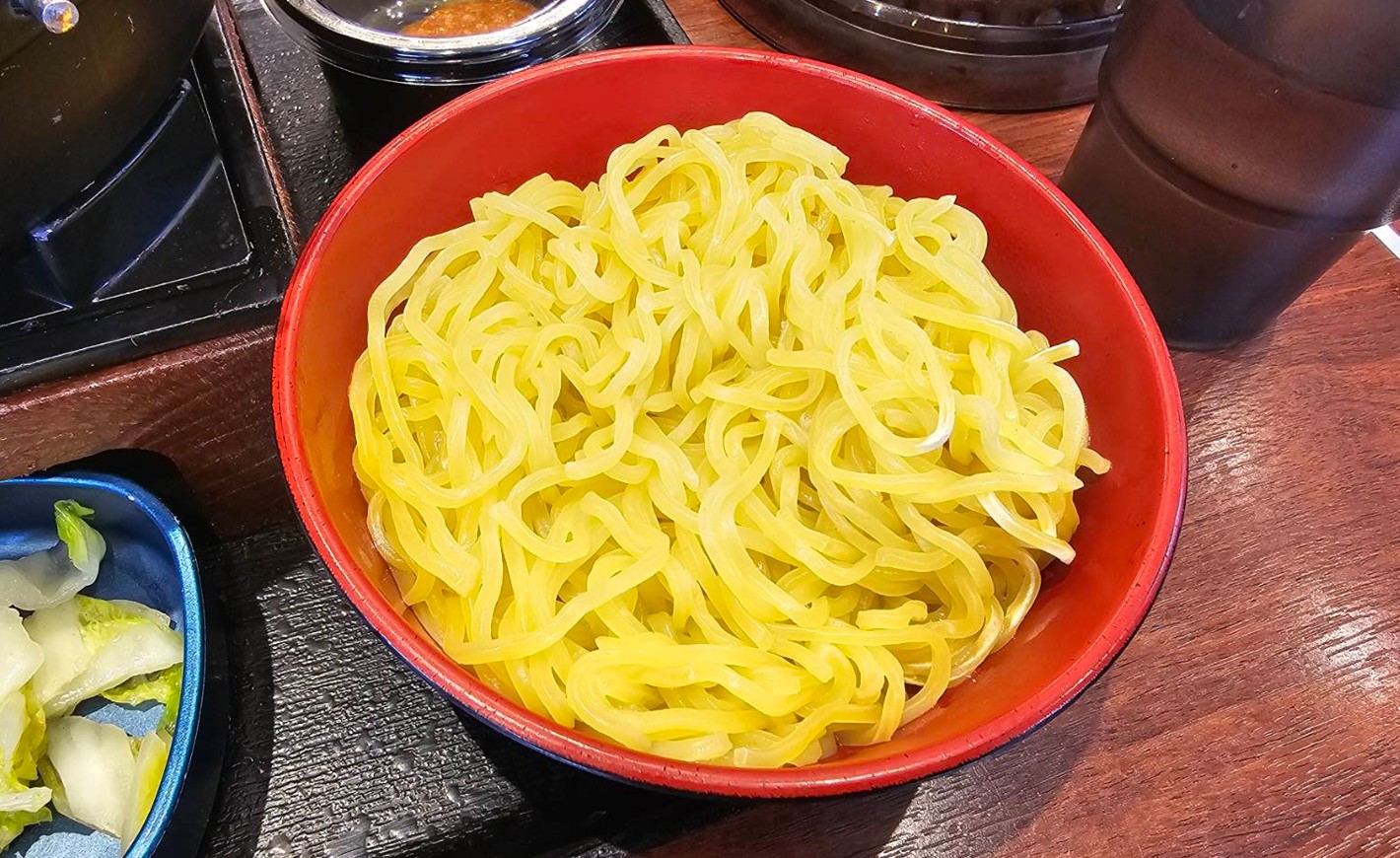 恐らく提供前に冷凍麺を湯通しして器に盛ってる感じですかね?