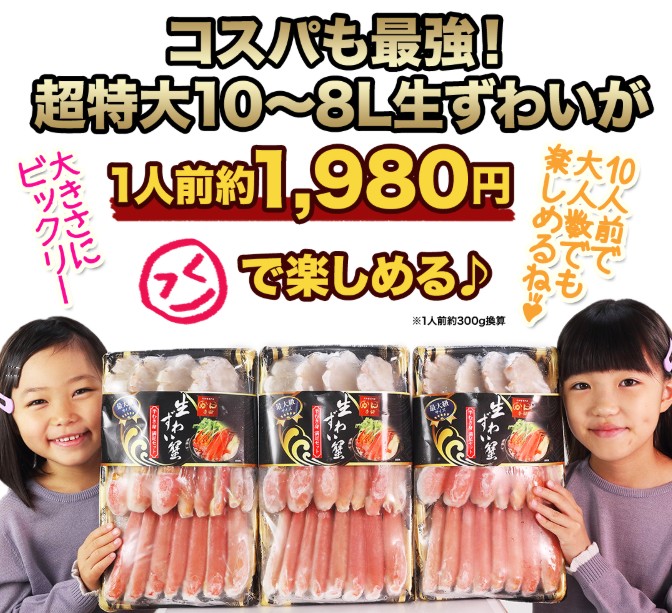 ▶ 商品ページ:超特大10L〜8L 生ずわい蟹 半むき身満足セット