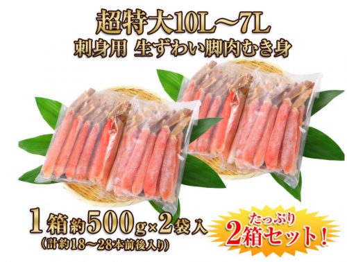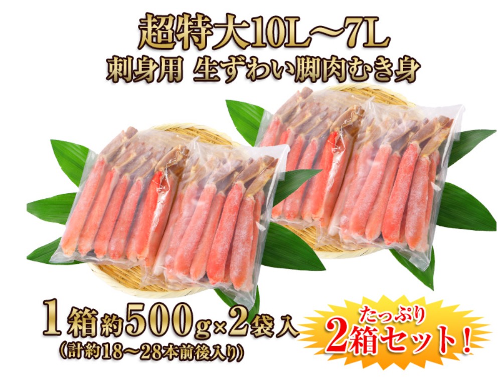 【刺身用】超特大10L~7L生ずわい脚肉むき身(約1kg×2箱) 商品ページはこちら