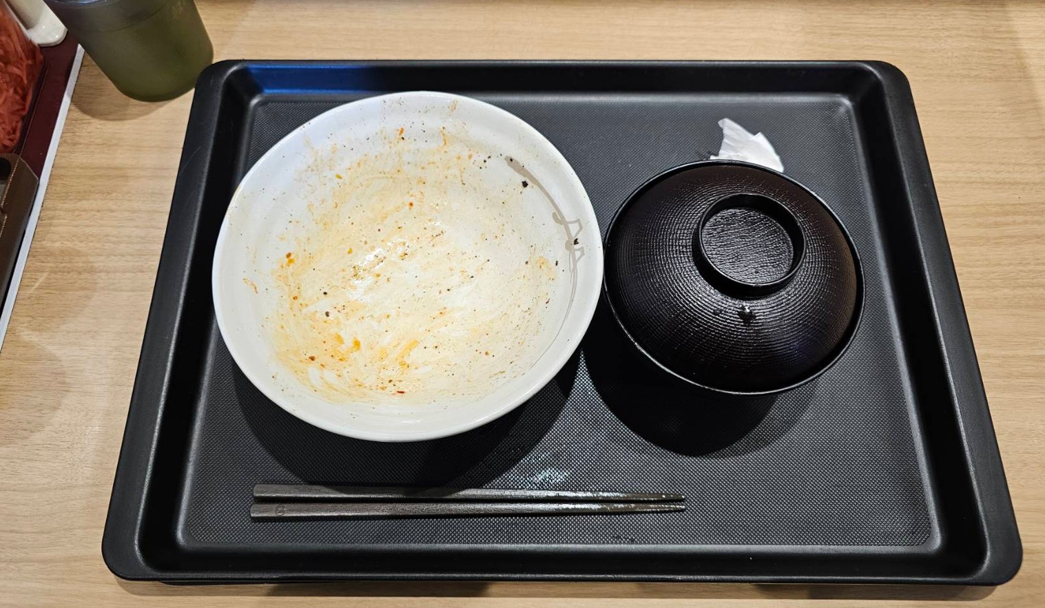 テーブル清掃が追い付いていないことで有名な松屋四ツ橋店です。