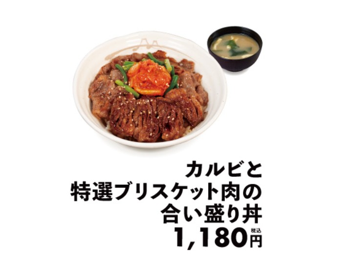 今回の「カルビと特選ブリスケット肉の合い盛り丼」松屋によると