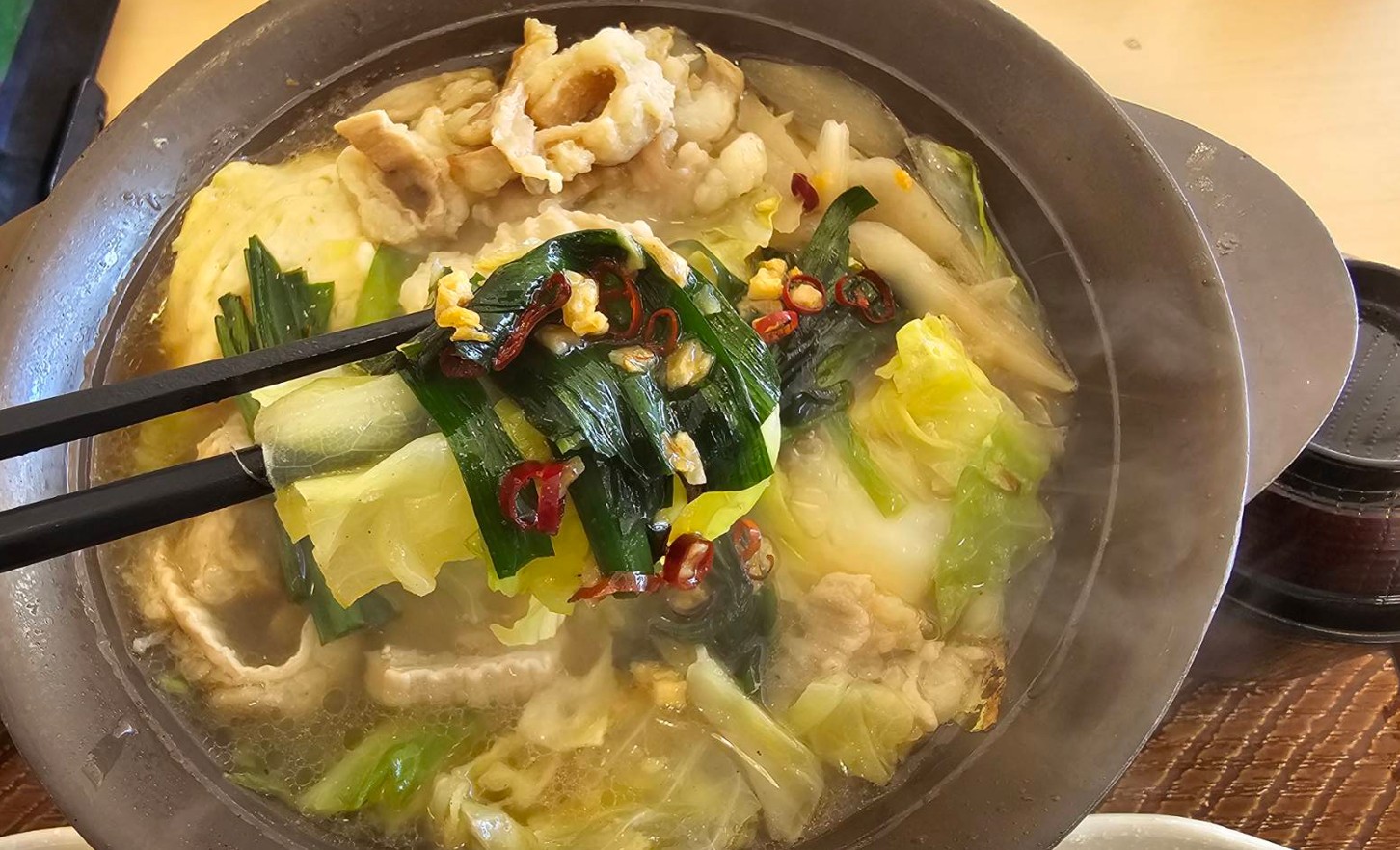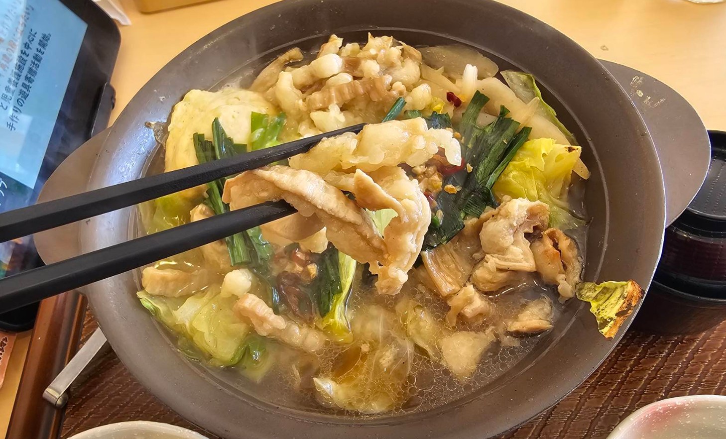 もつの脂が溶けたスープで食べる野菜がとても良かったです。