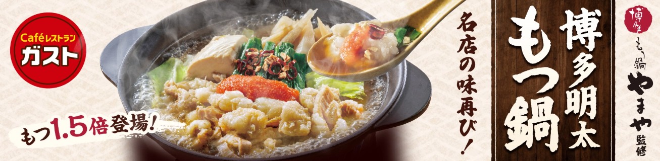 冬にぴったり・本格派でコスパ◎のコンロで楽しむ熱々もつ鍋。ガストのもつは、温度と時間にこだわって丁寧に下茹でしているため、驚くほどに臭みがなく、食感はぷりぷり。もつが苦手な方にもやまや監修のこだわりスープと共にぜひお試しいただきたい自信作です。