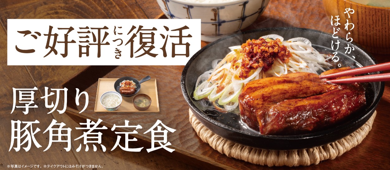 1/6から期間限定復活した「厚切り豚角煮定食」を食べてきました。