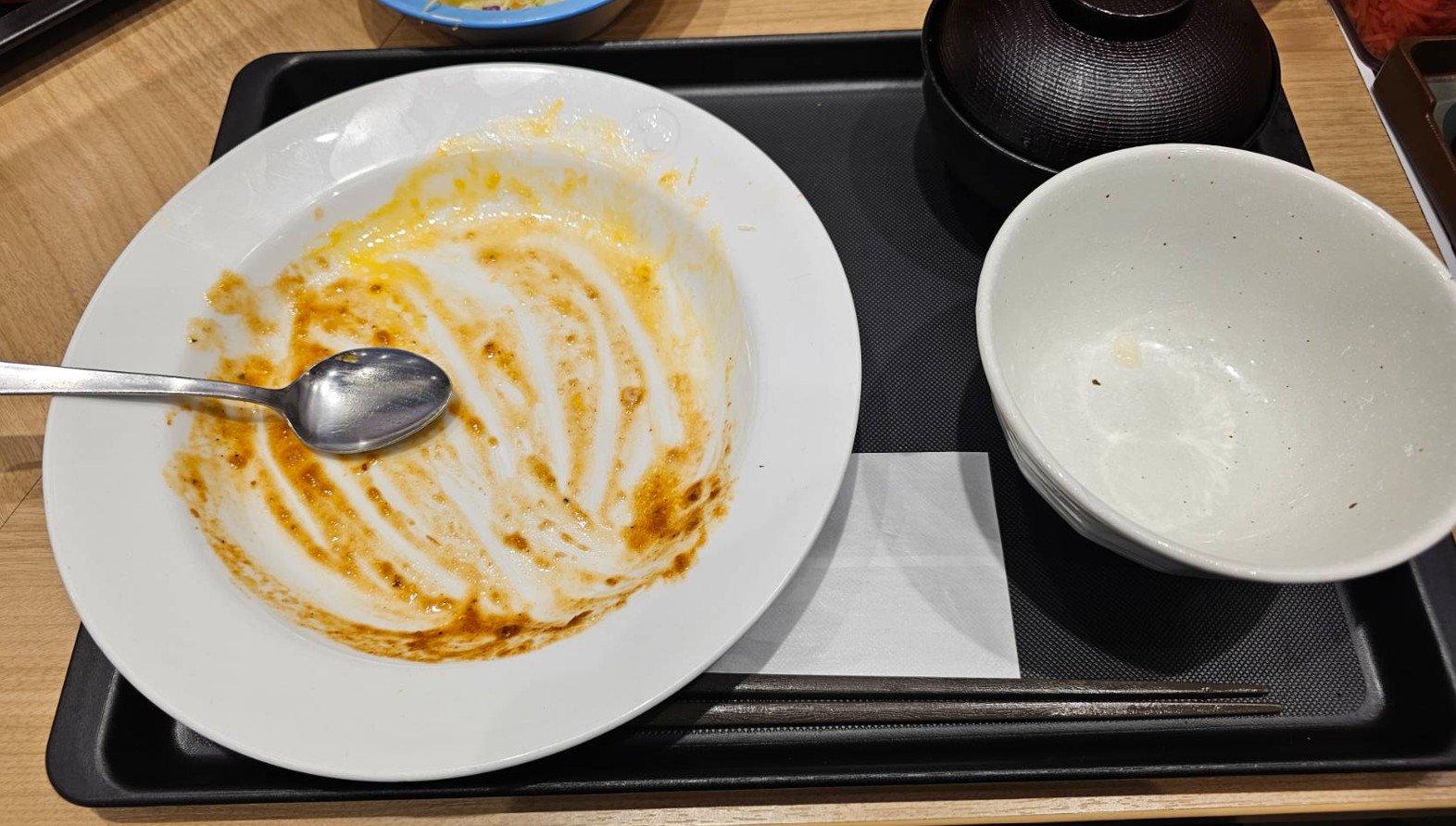 テーブル清掃が追い付いていないことで有名な松屋四ツ橋店です。