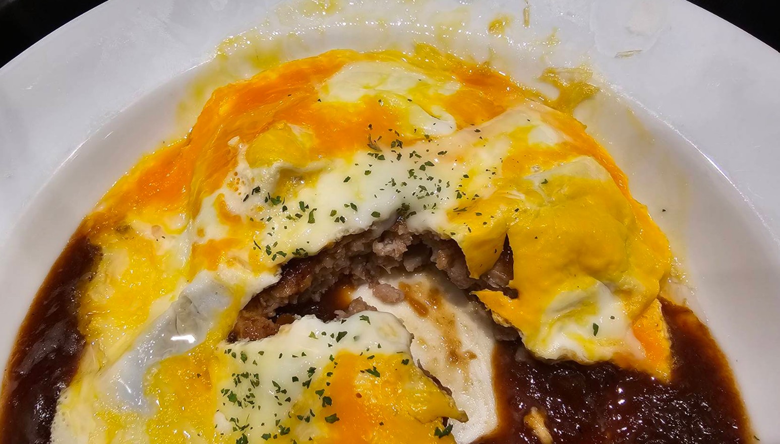 一口頬張れば、濃厚なデミグラスソースと、溢れ出す肉汁がオムレツとともに絡み合い、口いっぱいに幸せが広がる逸品です。