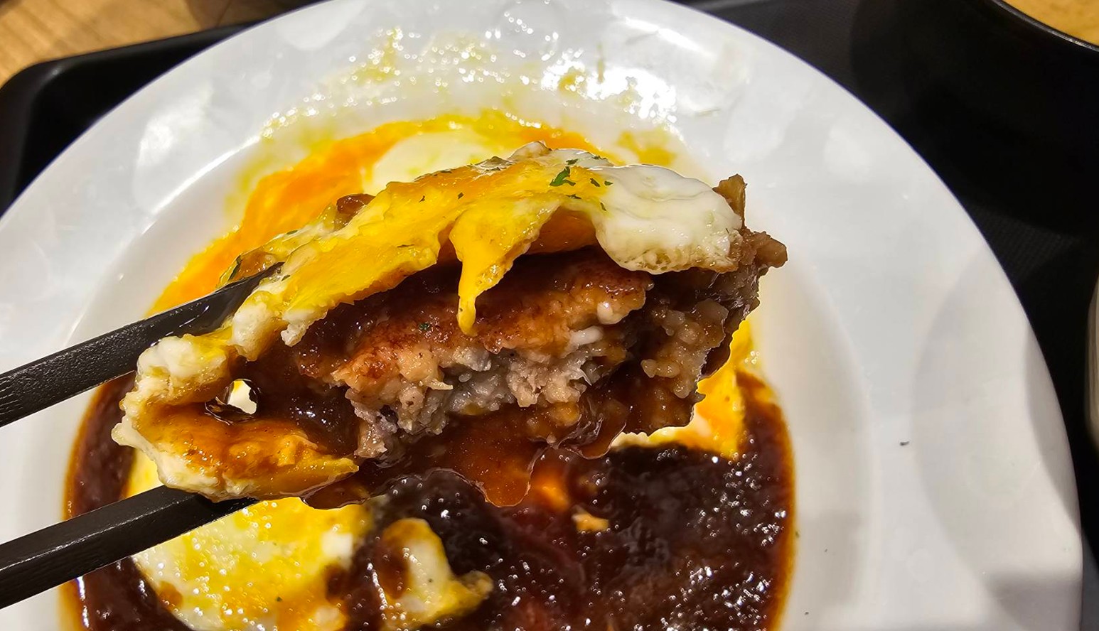 デミグラスソースがかなり尖った塩味があって味が濃いです。