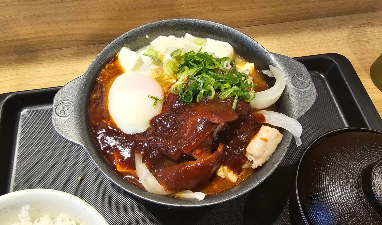 さらに、なめらかな豆腐と半熟玉子を崩せば、コク深さはそのままにマイルドな味わいの変化も楽しめます。