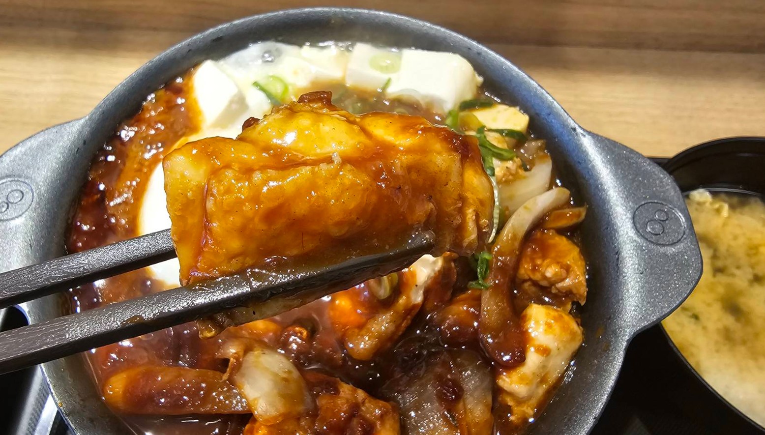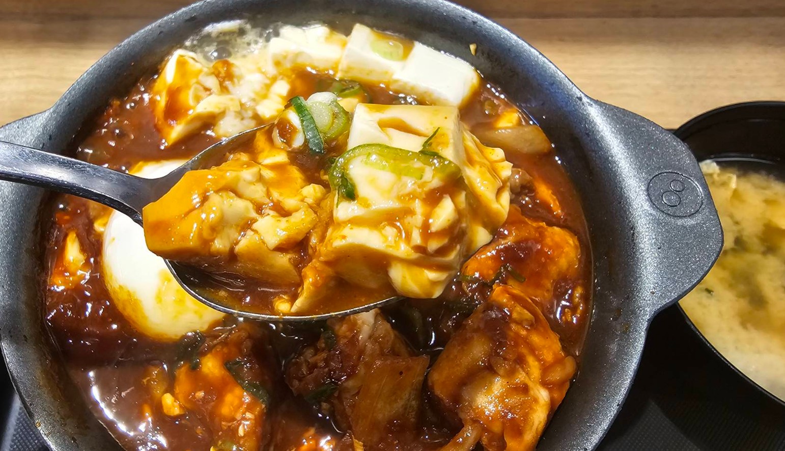 提供されてすぐは豆腐も冷たいので2分くらい待ってから食べたほうが良さげ。