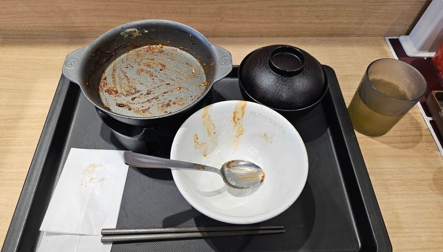 テーブル清掃が追い付いていないことで有名な松屋四ツ橋店です。