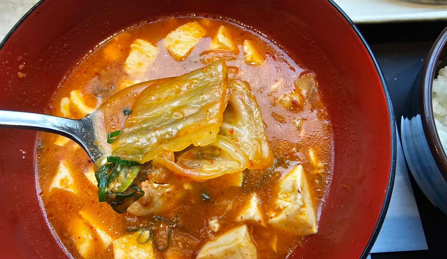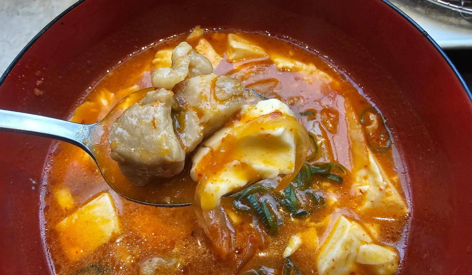 しっかり海鮮っぽい旨味のきいた旨辛の美味しいスープです。