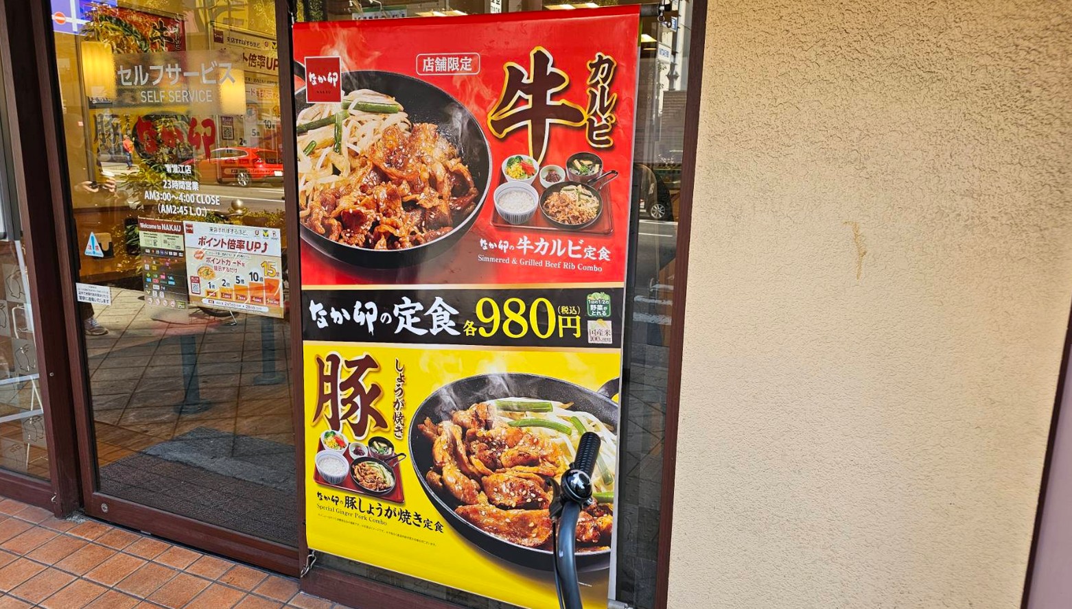もともとこの日は何食べるか決めてなかったので、近くの一風堂にでも行こうかなぁとか思って近くまで来たところ、なか卯の店先に見慣れないものを発見。