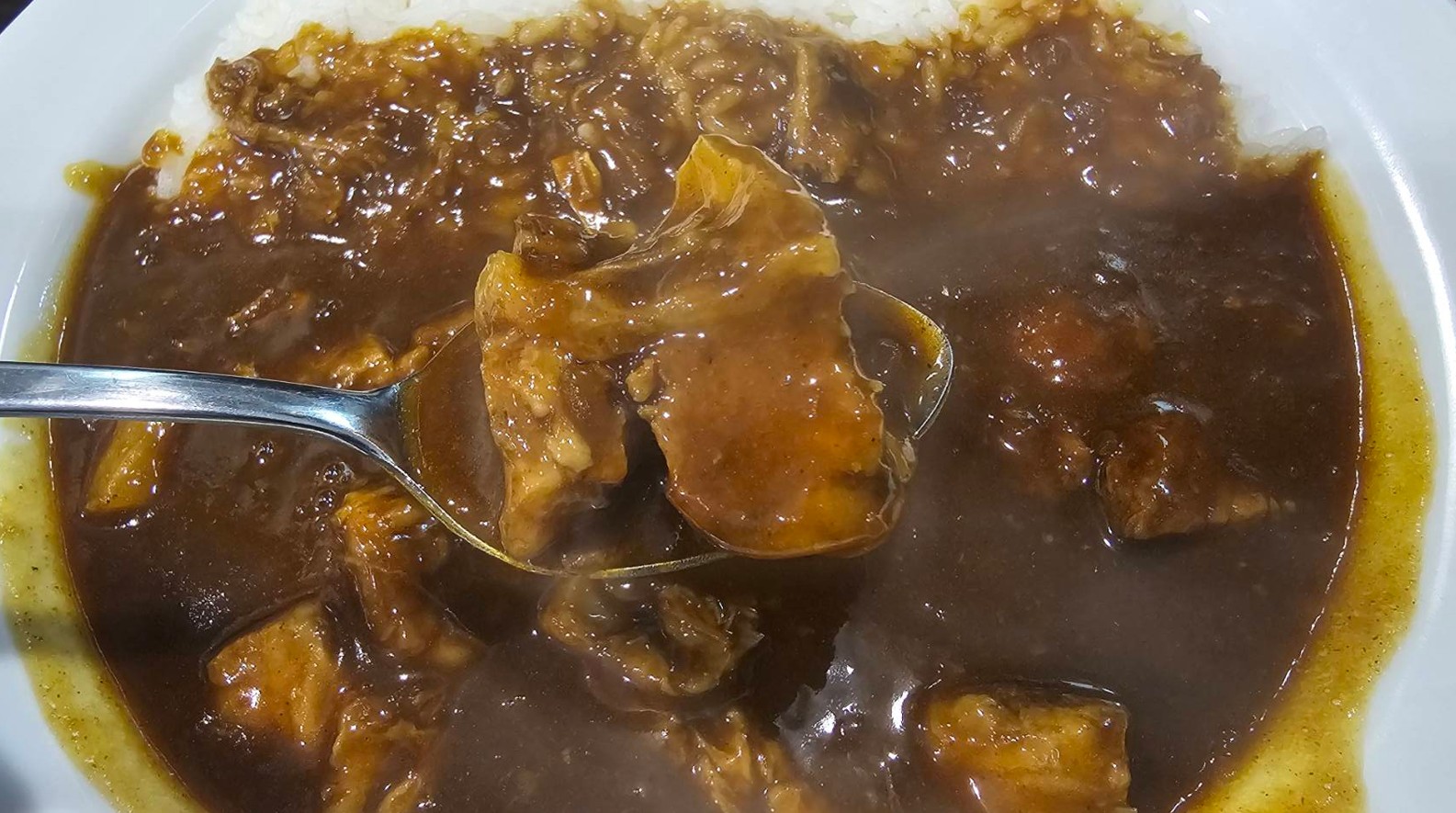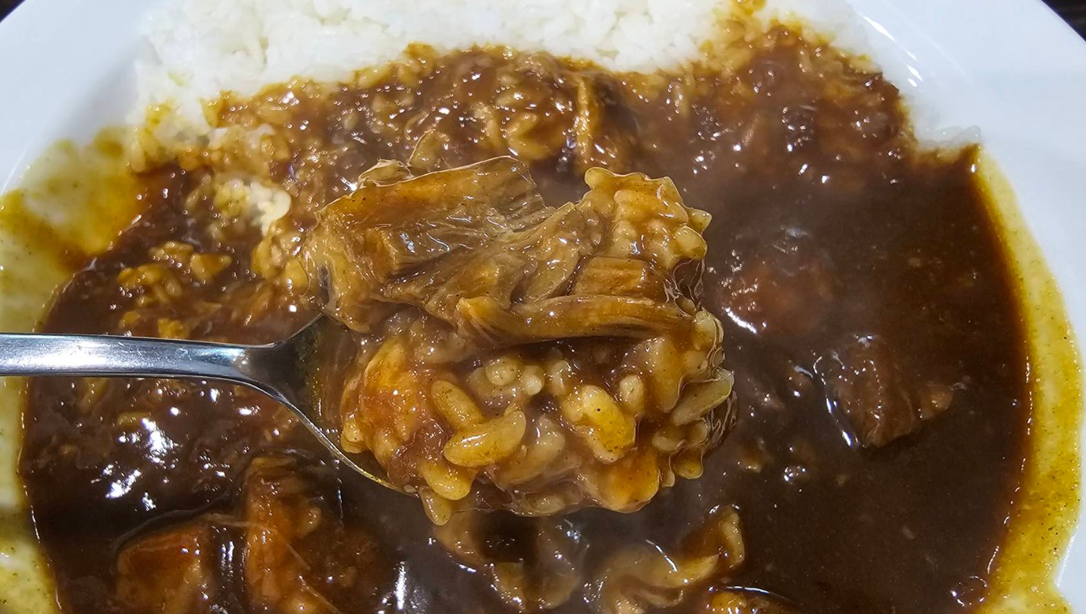 ココイチの「THE牛カレー」は、黒いルーの本格感と、肉増しの満足感がしっかりある一皿でした。