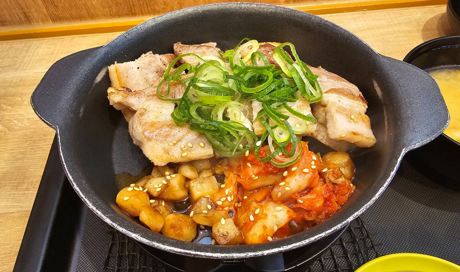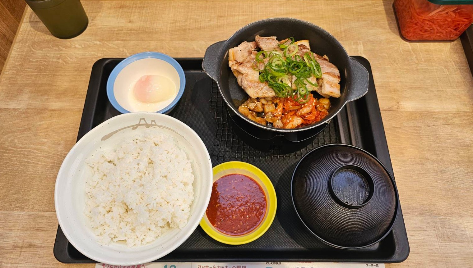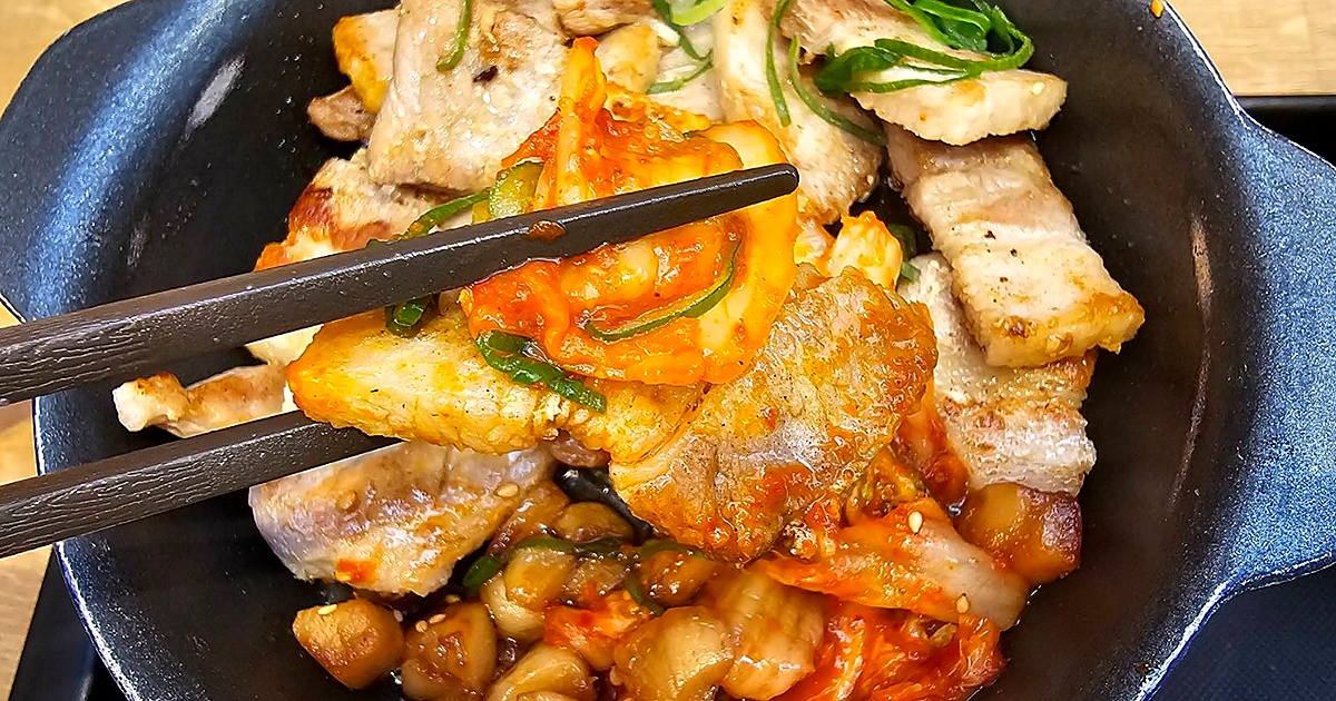 松屋のサムギョプサル風極厚豚カルビ焼肉定食は、とにかく鉄板で出てくるのが嬉しいメニューでした。