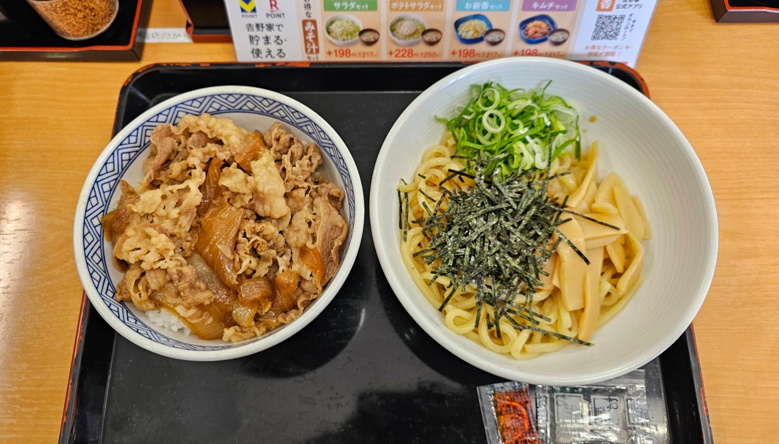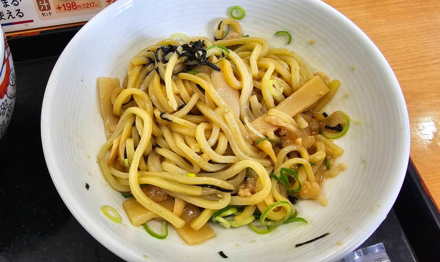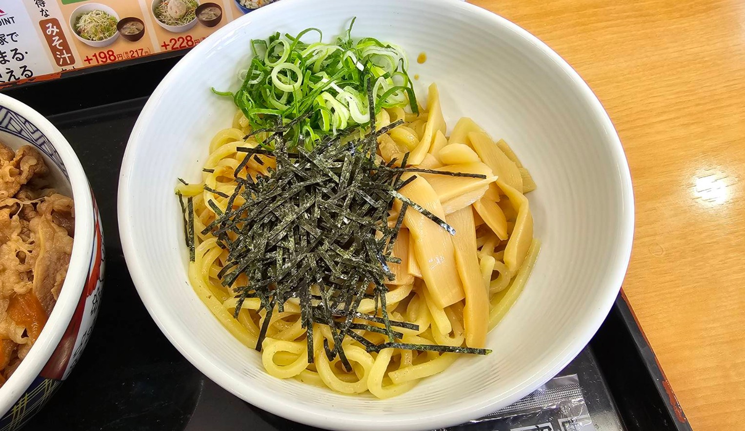 吉野家の牛丼・油そばセットは、本格的な油そばを求める人には少し物足りないかもしれませんが、良くも悪くも無難で食べやすい一品でした。