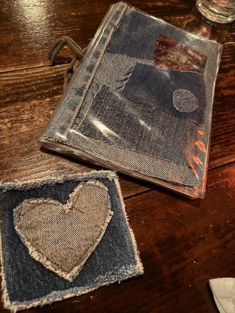 店外の暖簾だけでなく、メニューやコースターもジーンズで出来ていておしゃれ。