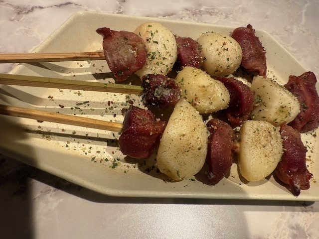 個人的に食べやすくリピしまくってるのはこちらの砂ズリとにんにくの串!
