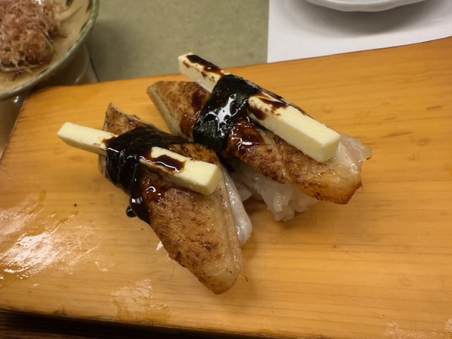 「じねん」には常連客がこぞって注文する名物メニューがあり、それが「うなぎバター寿司」です。