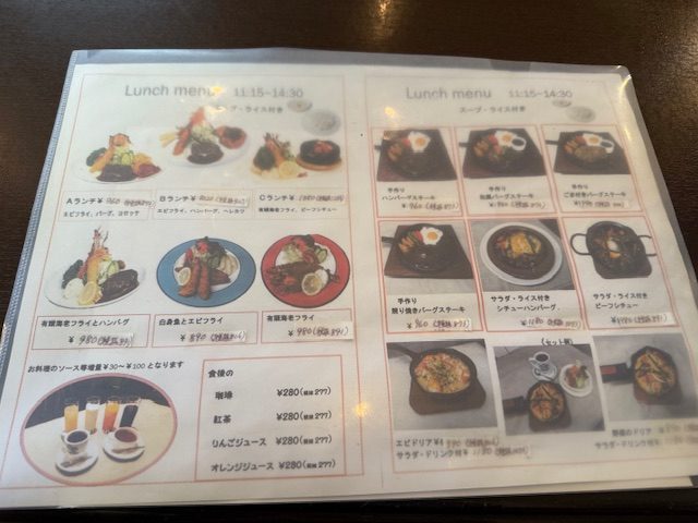 ハンバーグやエビフライなど、喫茶店らしい洋食メニューが1000円以下で楽しめます!