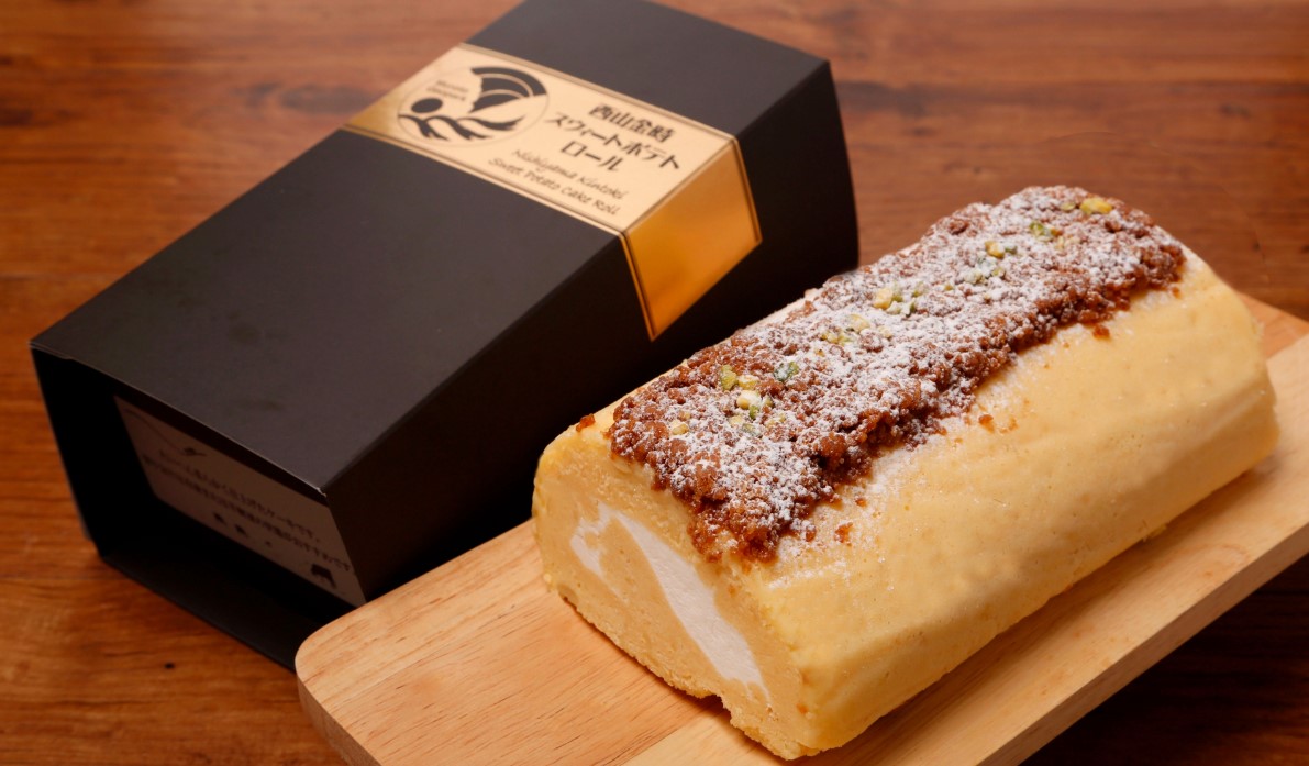 西山金時スウィートポテトロールは、高知県産のブランドさつまいもを使用した贅沢なロールケーキ。