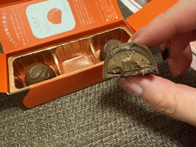 外側のチョコレートコーティングはパリッと、中のガナッシュは噛むごとにとろける食感が楽しめます!
