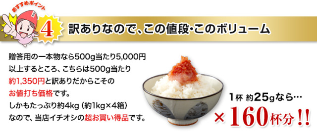 172:訳あり 本場福岡 無着色辛子明太子 約4kg(約1kg×4箱)