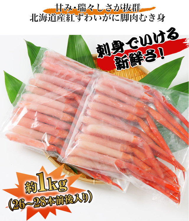 489:【刺身用】北海道産紅ずわいがに脚肉むき身 26~28本(約1kg)
