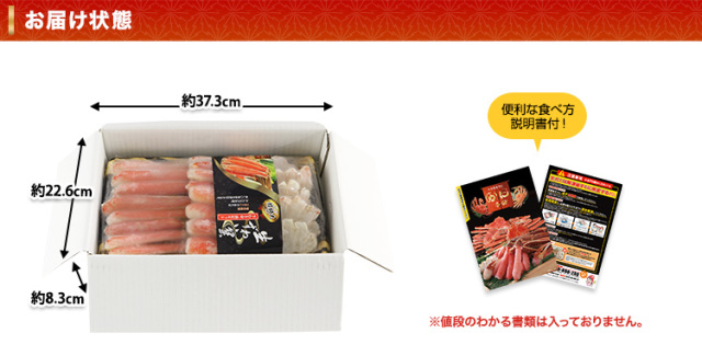 加熱してお召し上がりください。 品質保持のため、安全性の高い酸化防止剤(亜硫酸塩)を使用しております。 セット内容(脚9~12本、爪3~6個、爪下3~6個、肩8~12枚、小指3~6本)